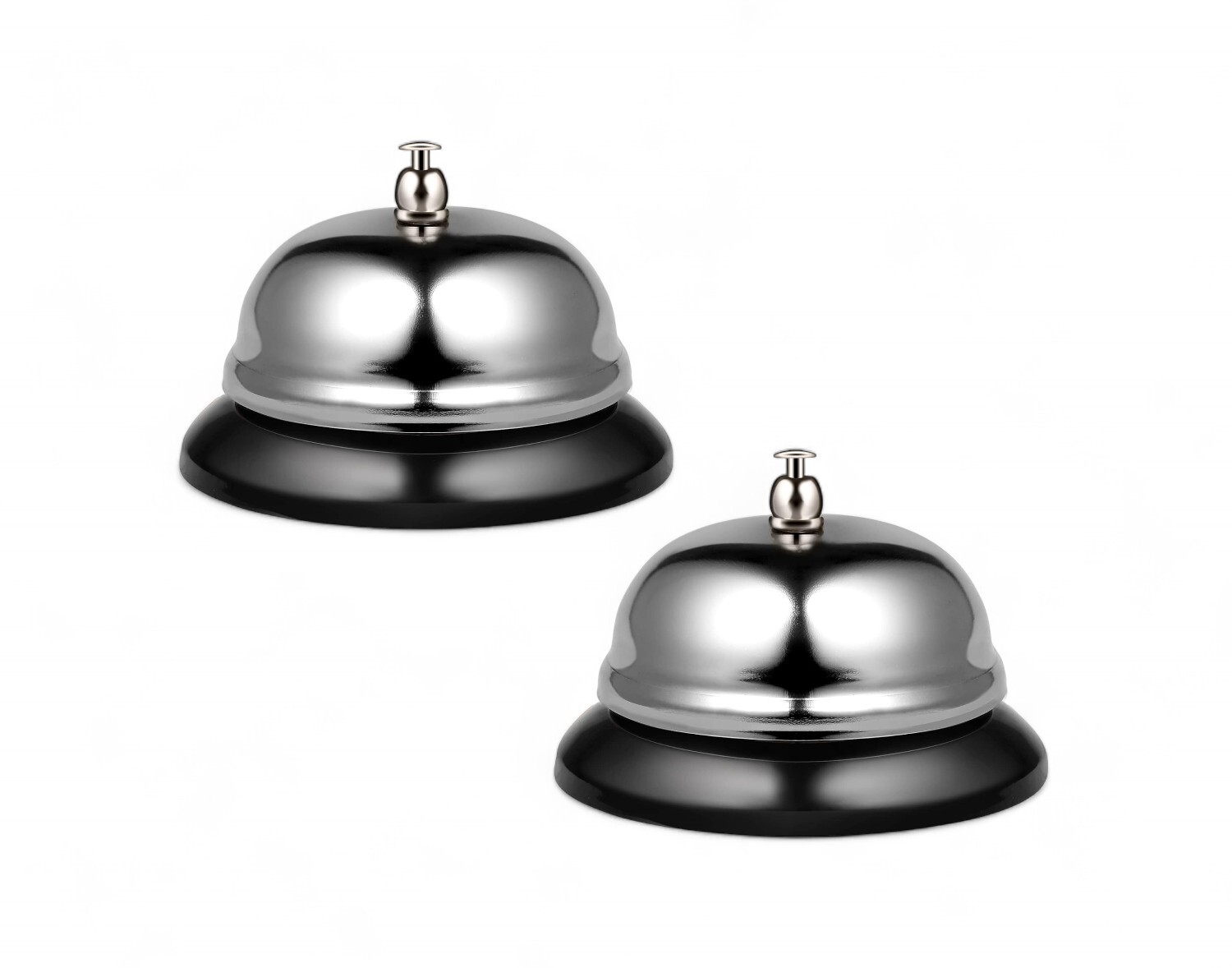 2 x Call Bells - Chrome Plated Desk Service Bell for Reception, Counter, Shop, and Restaurant