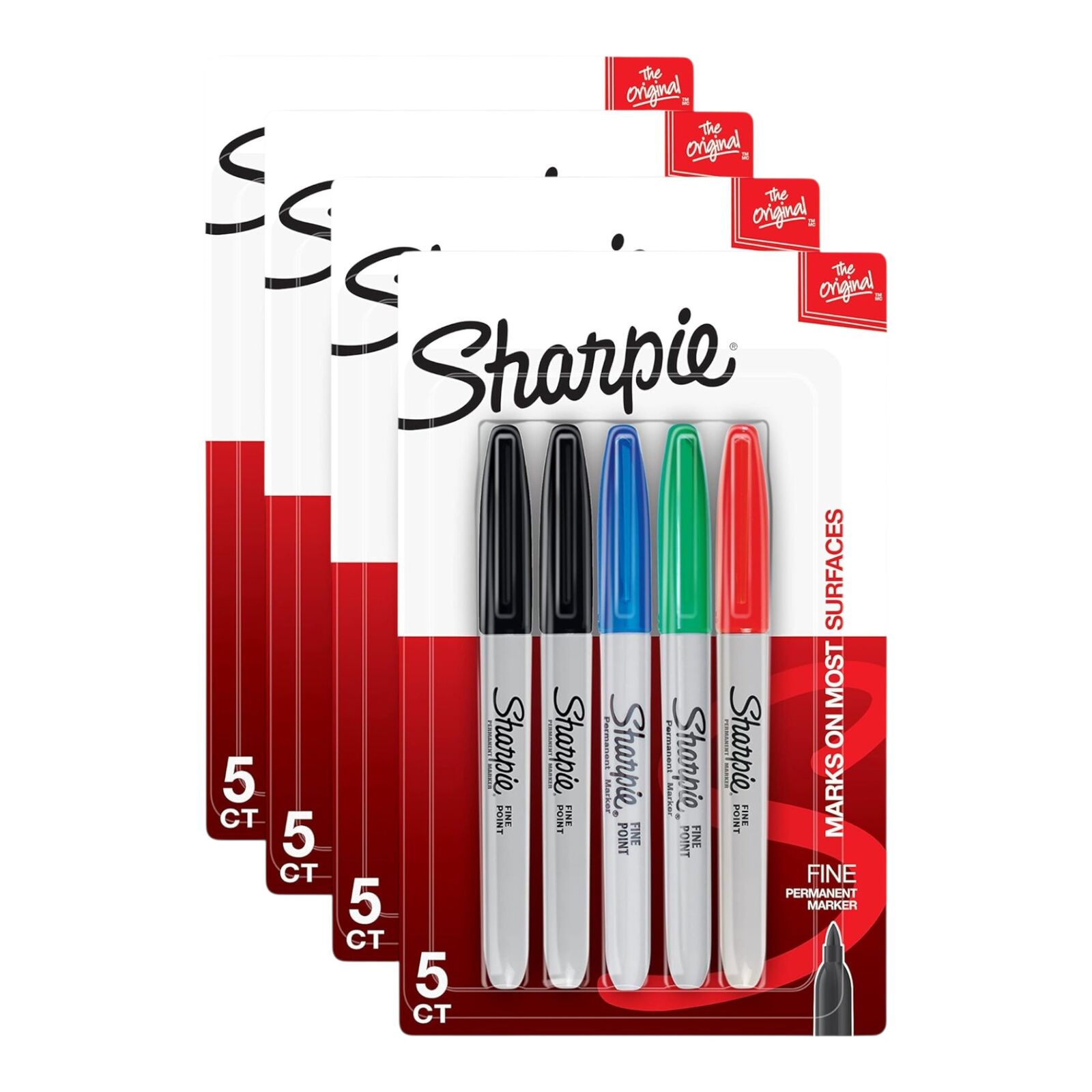 Supplied as 4 retail packs, each containing 5 Sharpie Fine Point permanent markers.