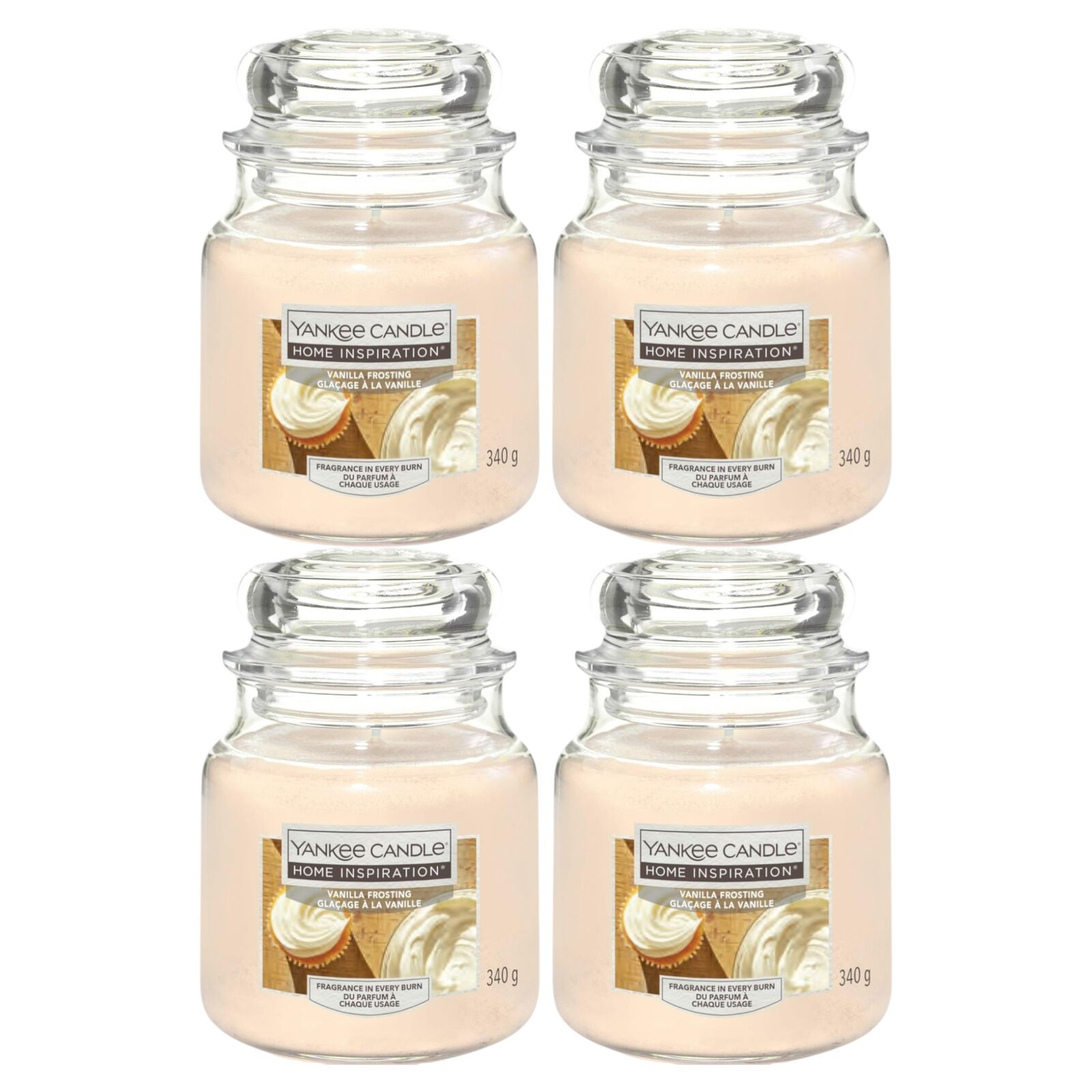 Fill your home with lasting warmth and sweetness with this 4 pack of Yankee Candle Home Inspiration Medium Jar Candles in Vanilla Frosting. Each 340g 12oz candle delivers a rich, creamy vanilla fragrance with smooth frosting notes, creating a cosy and inviting atmosphere.