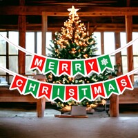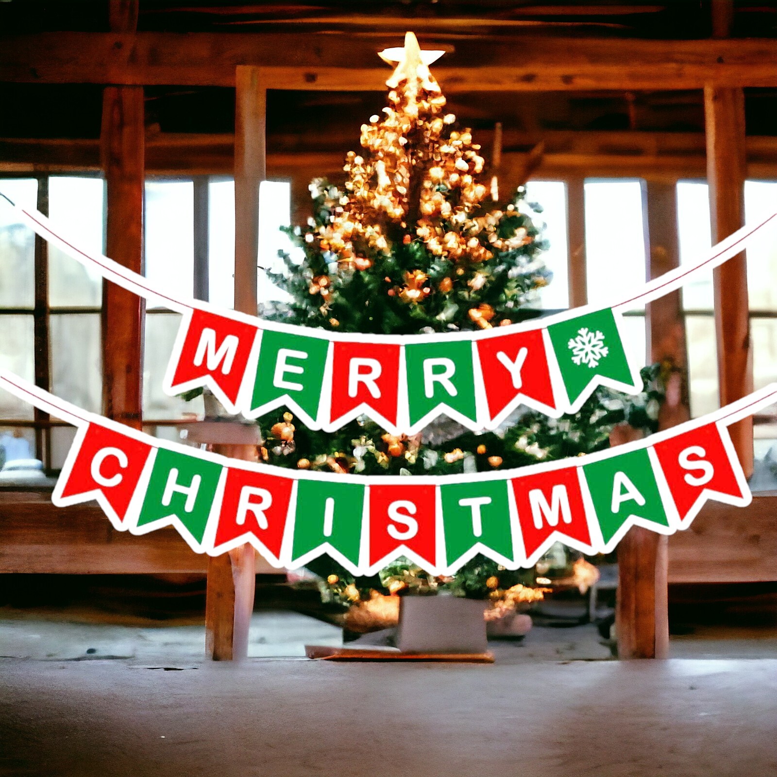 Celebrate 'the most wonderful time of the year' in style with this vibrant and charming Christmas banner bunting. Whether you're hosting a Christmas party at home or decorating a public space, this banner is sure to spread holiday cheer and create a festive atmosphere for all to enjoy.