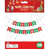 5m Merry Christmas Banner Bunting Santa Holiday Celebration Decoration Red Green