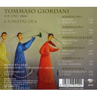Italian born composer Tommaso Giordani (1730-1806) built his career in London, where he wrote a great deal of music including operas and chamber pieces. These six sonatas are his Opus 4. They are scored for violin and keyboard, and are each 2-movement works in the Galante style, similar to that of Johann Christian Bach. Violinist Lina Uinskyte and keyboardist Marco Ruggeri rise to the challenge of these highly virtuosic pieces. Uinskyte, Lina - Sonate Fuer Violine Und Cembalo (