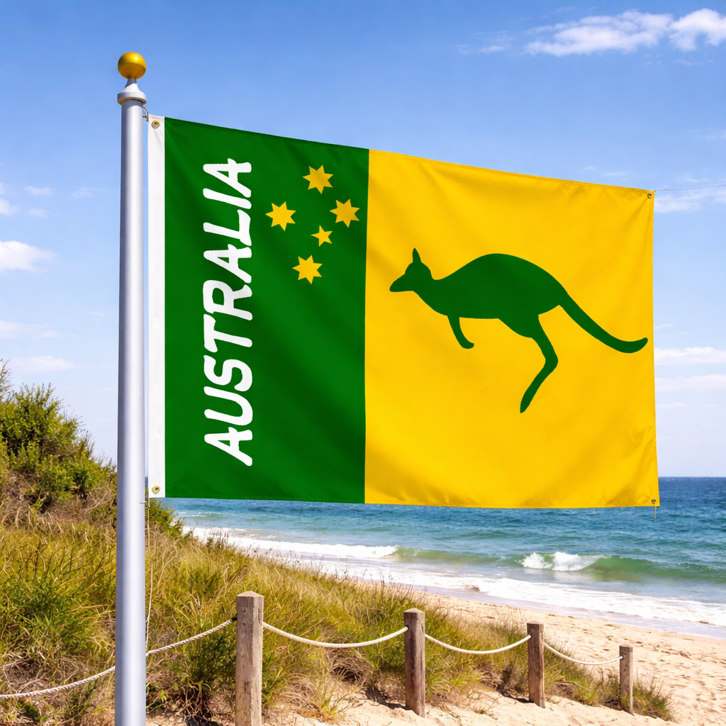 6 Australia Green Gold Kangaroo Flag Large 90 x 150 cm Aussie Pride Group Use