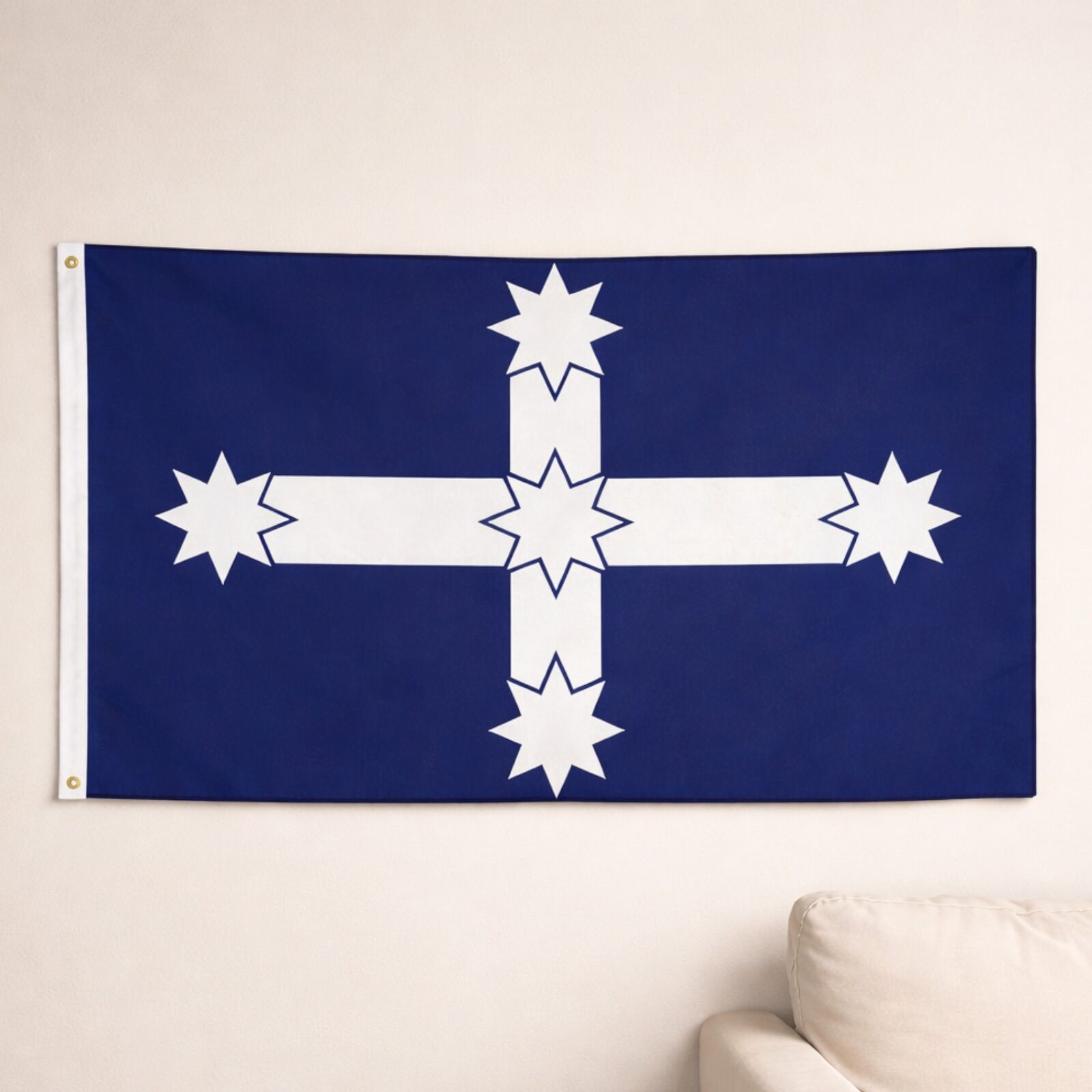 This six pack of large Eureka Stockade flags is ideal for group events, rallies, clubs, or large-scale displays. Each flag measures 90 x 180 cm and features the recognisable Southern Cross design associated with the Eureka Stockade.