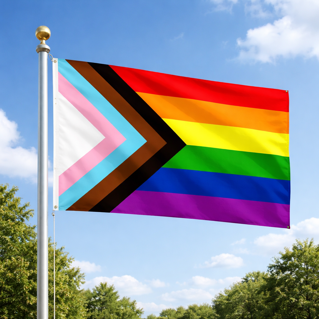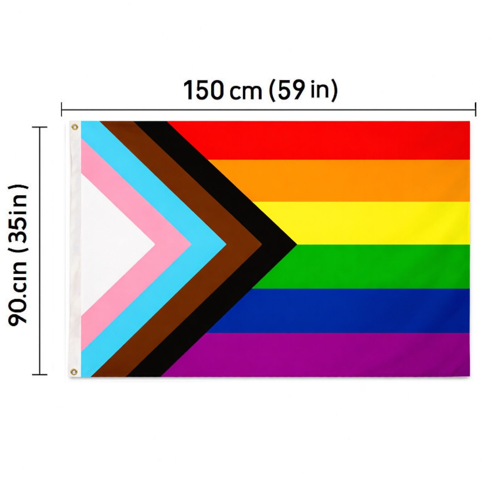 6 Rainbow Progress Pride Flag Large 90 x 150 cm LGBTQI+ Pride Group Display