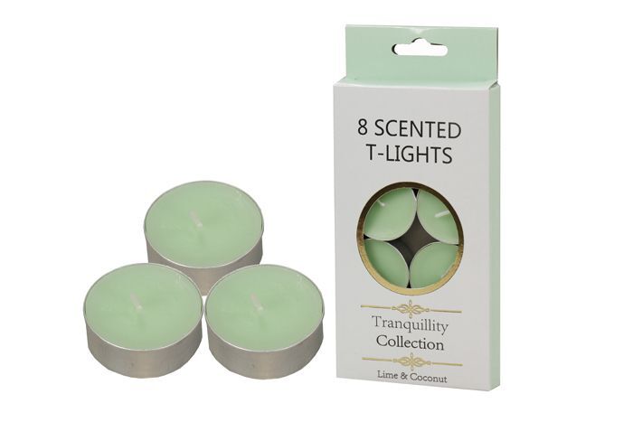 8-Pack Tranquility Tea Lights Scented Lime & Coconut Candle (4 Hour Burn)