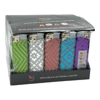Box of 50 Boom Glitter Zig Zag Click Refillable Gas Lighters Assorted Colours