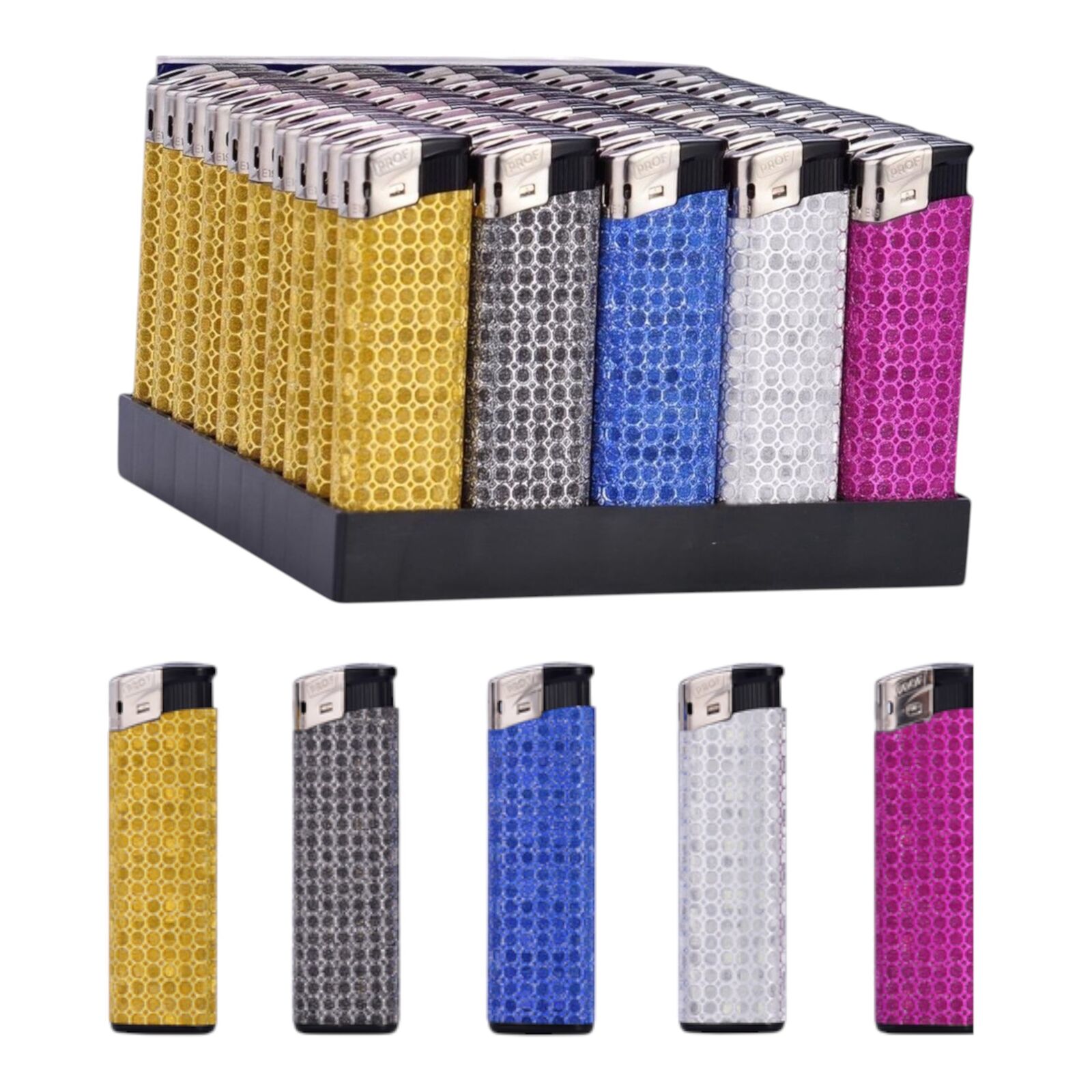 Box of 50 lighters – Supplied as a complete tray containing 50 individual lighters.