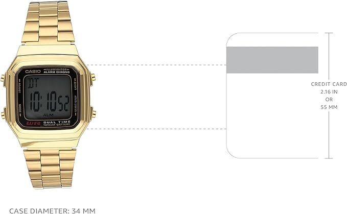 The Casio A178WGA-1A combines classic digital styling with practical everyday functionality. Featuring a gold-tone stainless steel band and easy-to-read digital display, this retro-inspired watch offers dependable performance with long battery life.