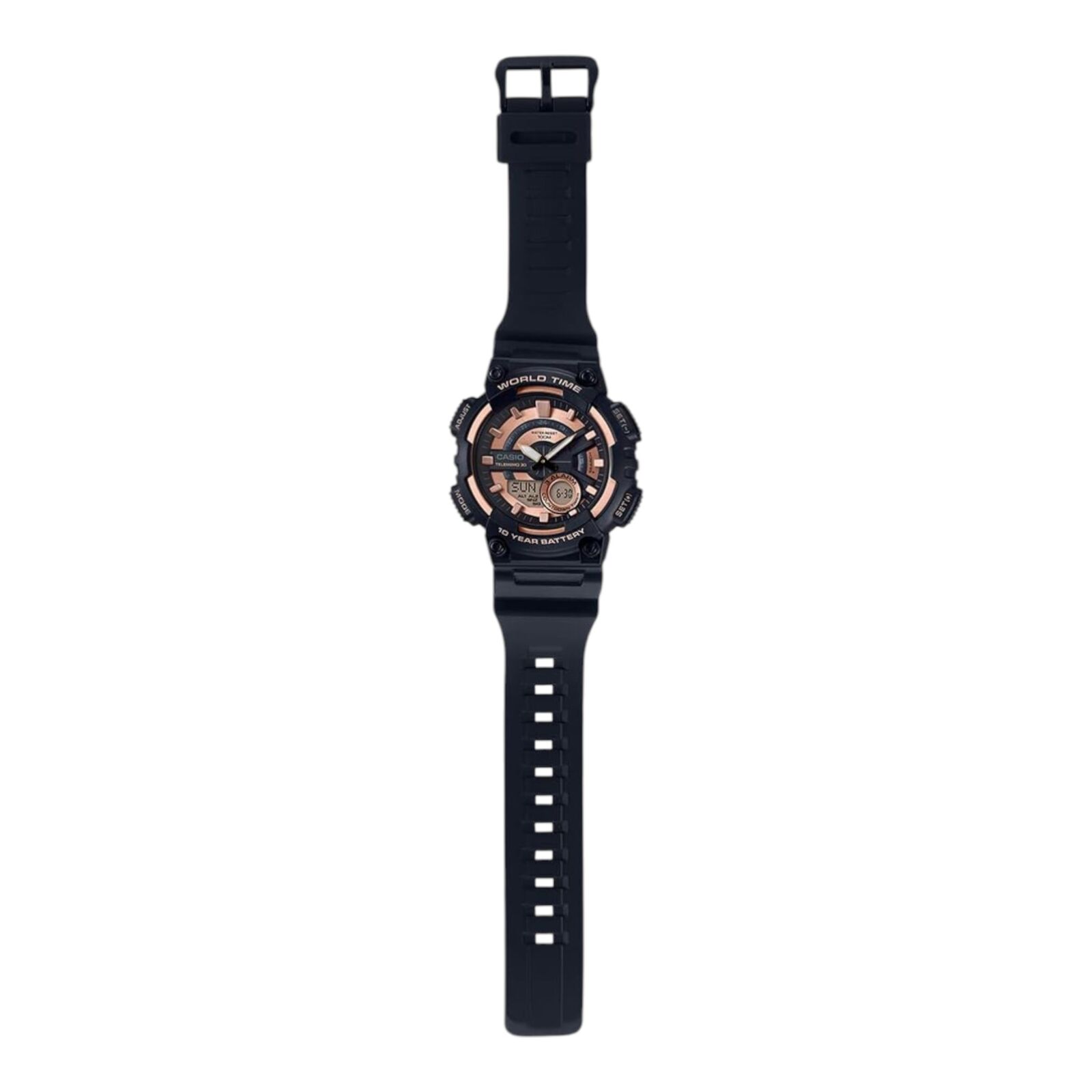 Casio AEQ-110W-1A3V Mens Watch Black Rose Gold Resin Analog Digital 100M