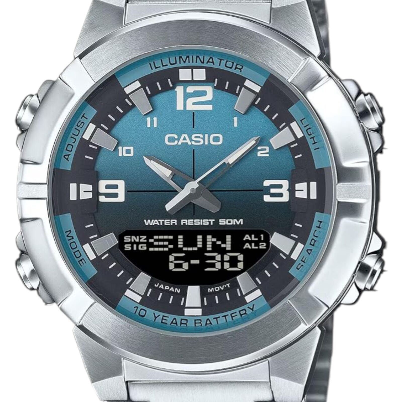 Casio AMW-870DA-2A2V Mens Watch Blue Dial Steel Band Analog Digital 50M