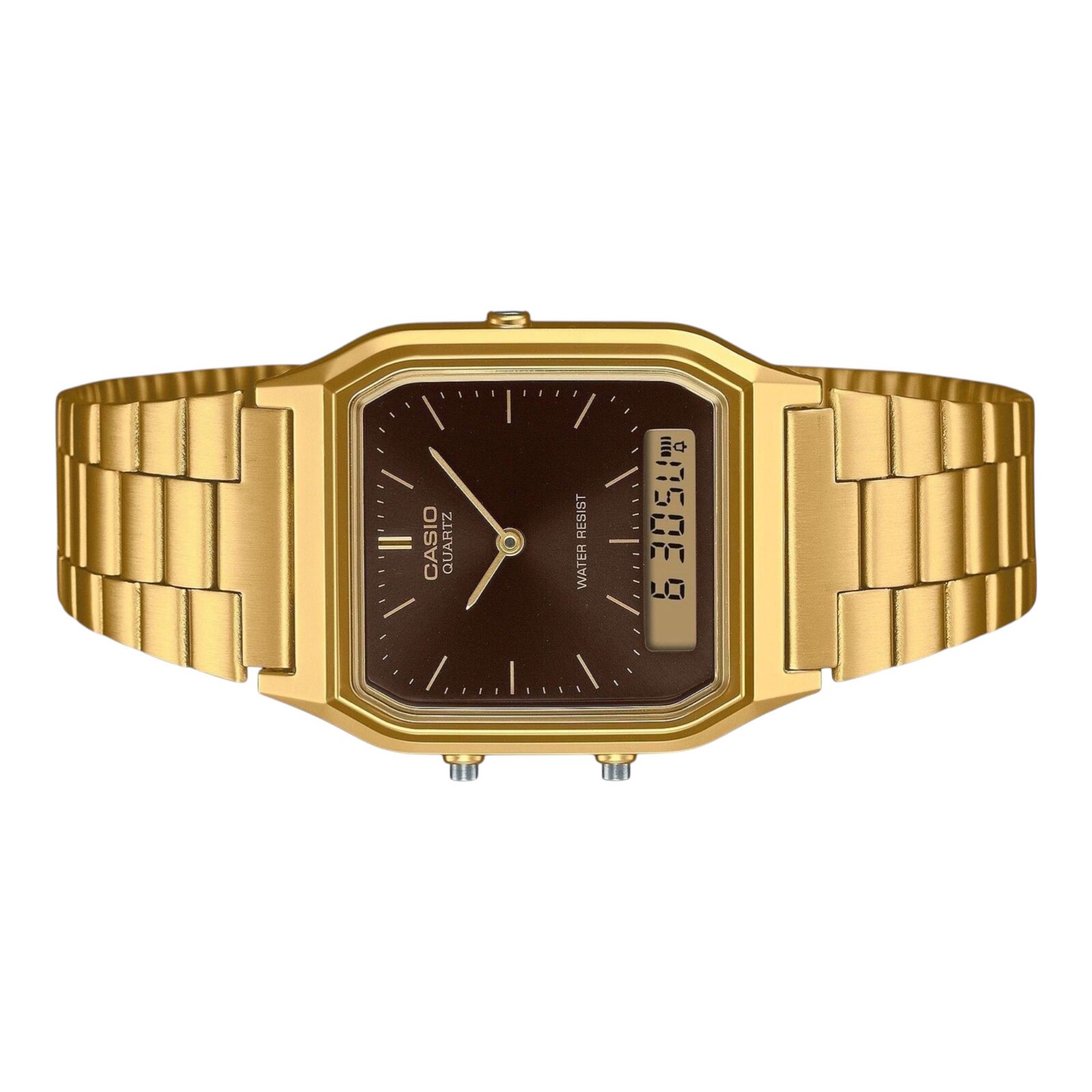 Casio AQ-230GA-5A Unisex Watch Brown Dial Gold Tone Analog Digital Vintage