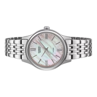 Mother of pearl dial. Elegant iridescent dial offering subtle colour variation and refined detail.