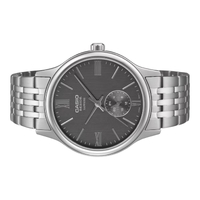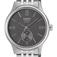 The Casio BMS-100D-8AV from the Beside series delivers streamlined elegance with a modern grey dial and solid stainless steel bracelet. Designed for business and formal occasions, this timepiece combines slim proportions with polished refinement.