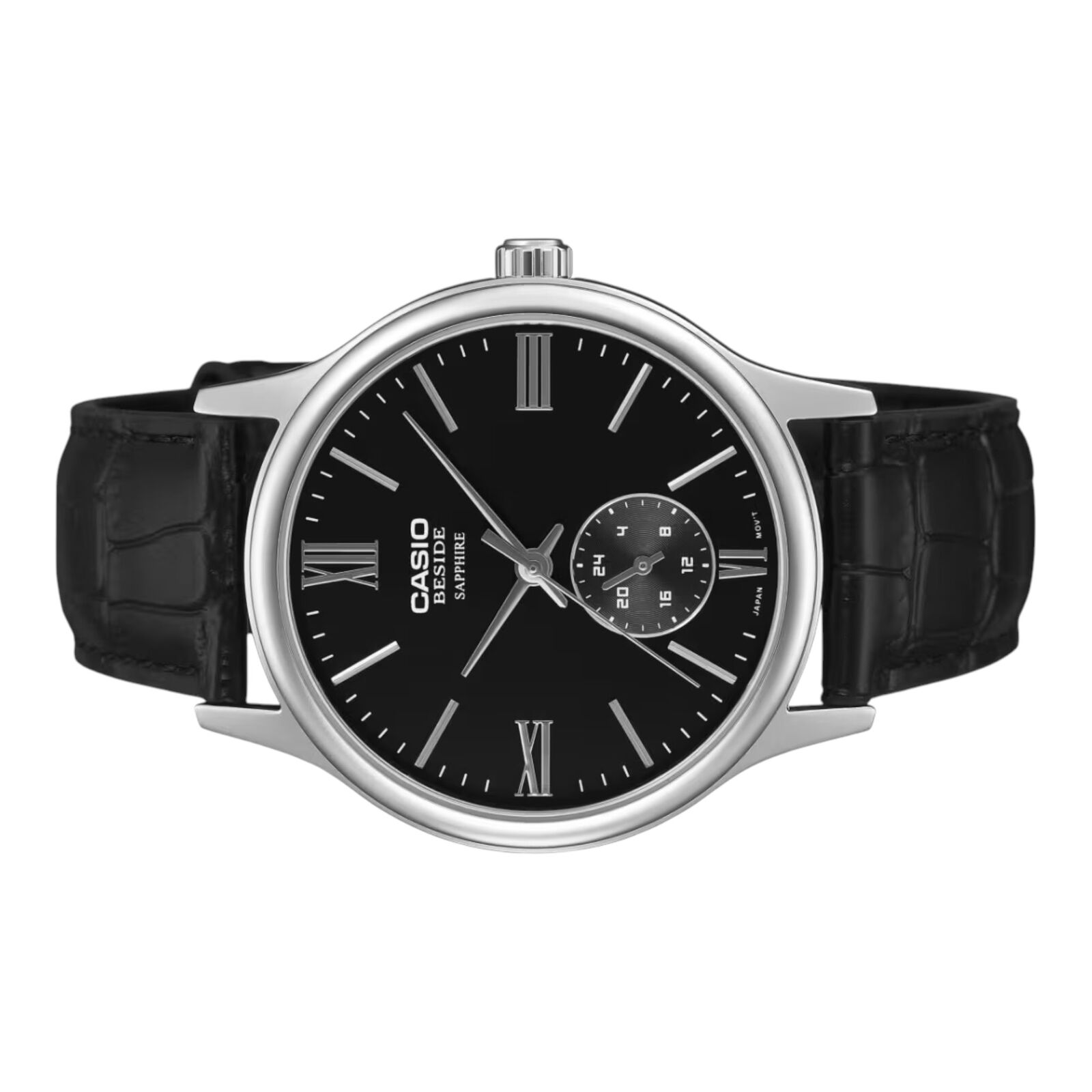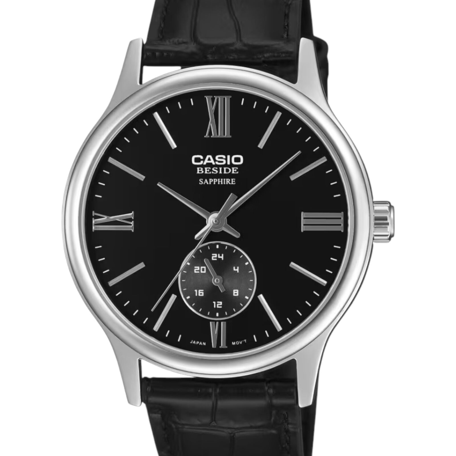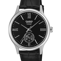 The Casio BMS-100L-1AV from the Beside series delivers refined styling in a slim and balanced profile. Featuring a clean black dial paired with a genuine black leather strap, this model is designed for business wear and formal occasions while remaining comfortable for everyday use.