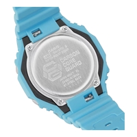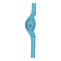 The Casio G-Shock GA-2100-2A2 features a bold tone on tone blue design combined with durable construction and everyday functionality. Built with a slim profile and carbon core guard structure, this model delivers a modern look while maintaining the toughness G-Shock is known for.