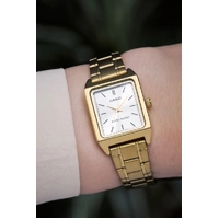 Elevate your everyday style with the Casio LTP-V007G-9E, a refined women’s dress watch that fuses vintage charm with modern reliability. Featuring a rectangular gold-tone case and dial, this lightweight timepiece is both understated and elegant — the perfect accessory for workdays or evenings out.