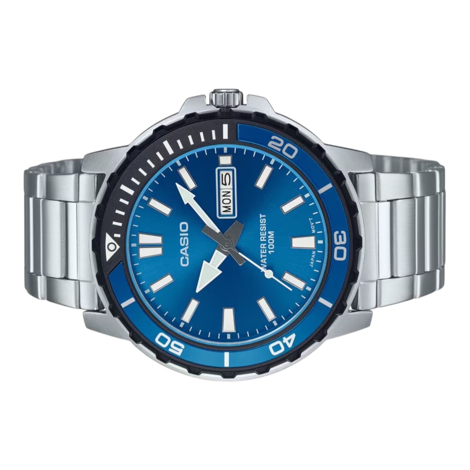 Casio MTD-125D-2A1V Mens Watch 45mm Blue Dial Stainless Steel 100M