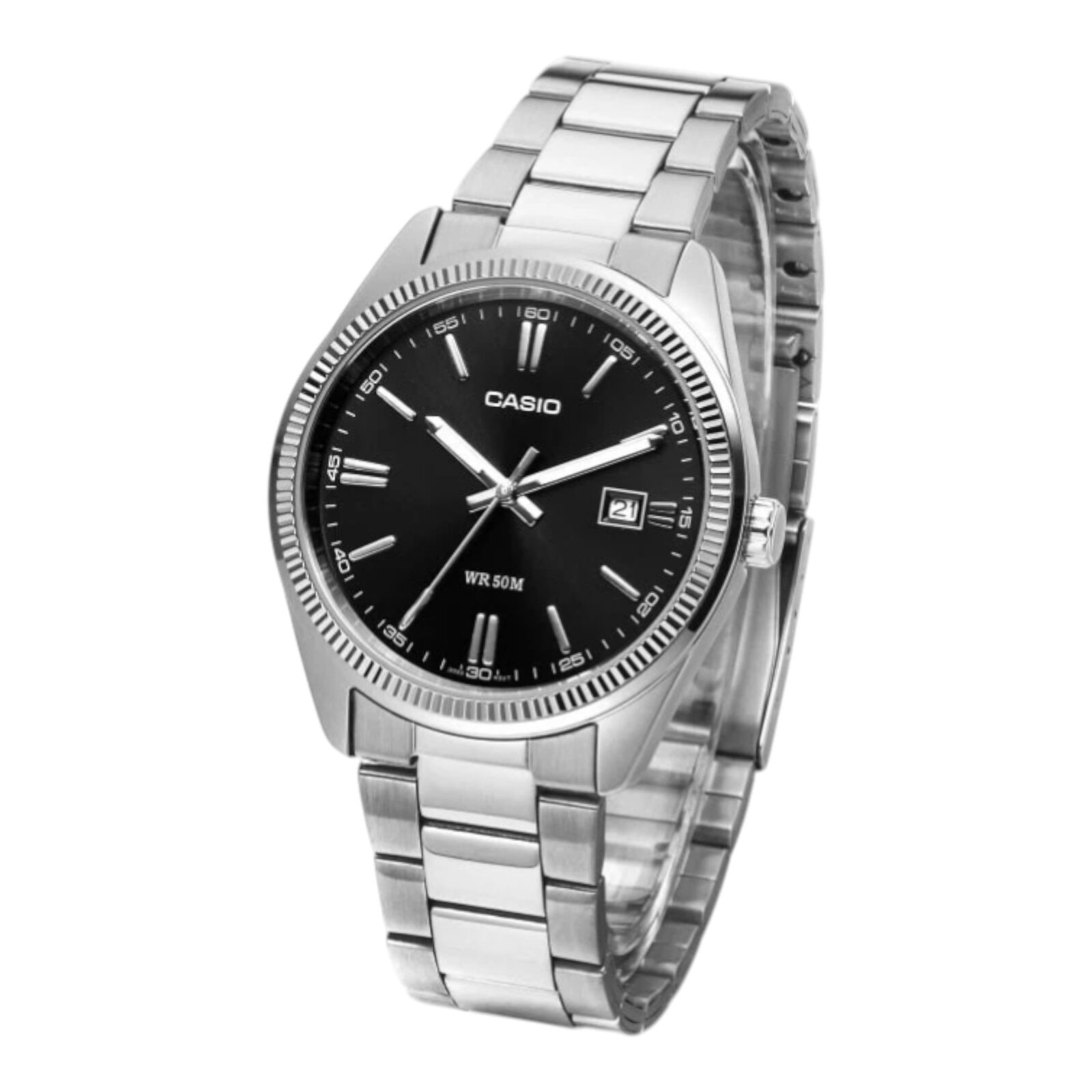 The Casio MTP-1302D-1A1 is a clean and classic dress watch featuring a black dial paired with a stainless steel band. Designed for everyday wear, this model offers a simple and versatile look suitable for business, formal, or casual settings.