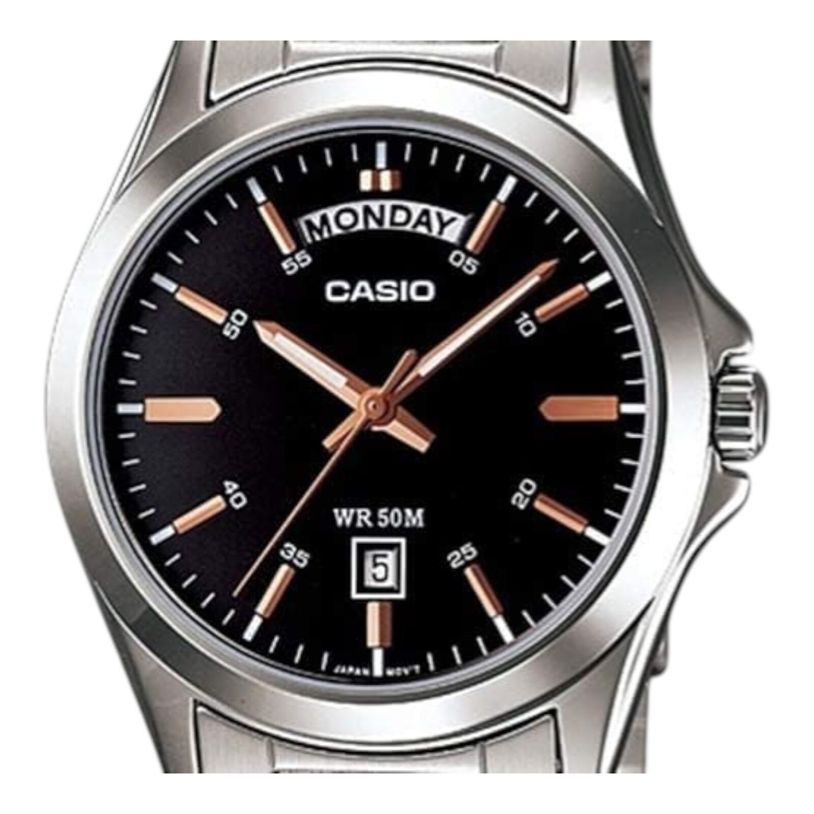 Casio MTP-1370D-1A2V Mens Watch Black Dial Steel Band Day Date 50M