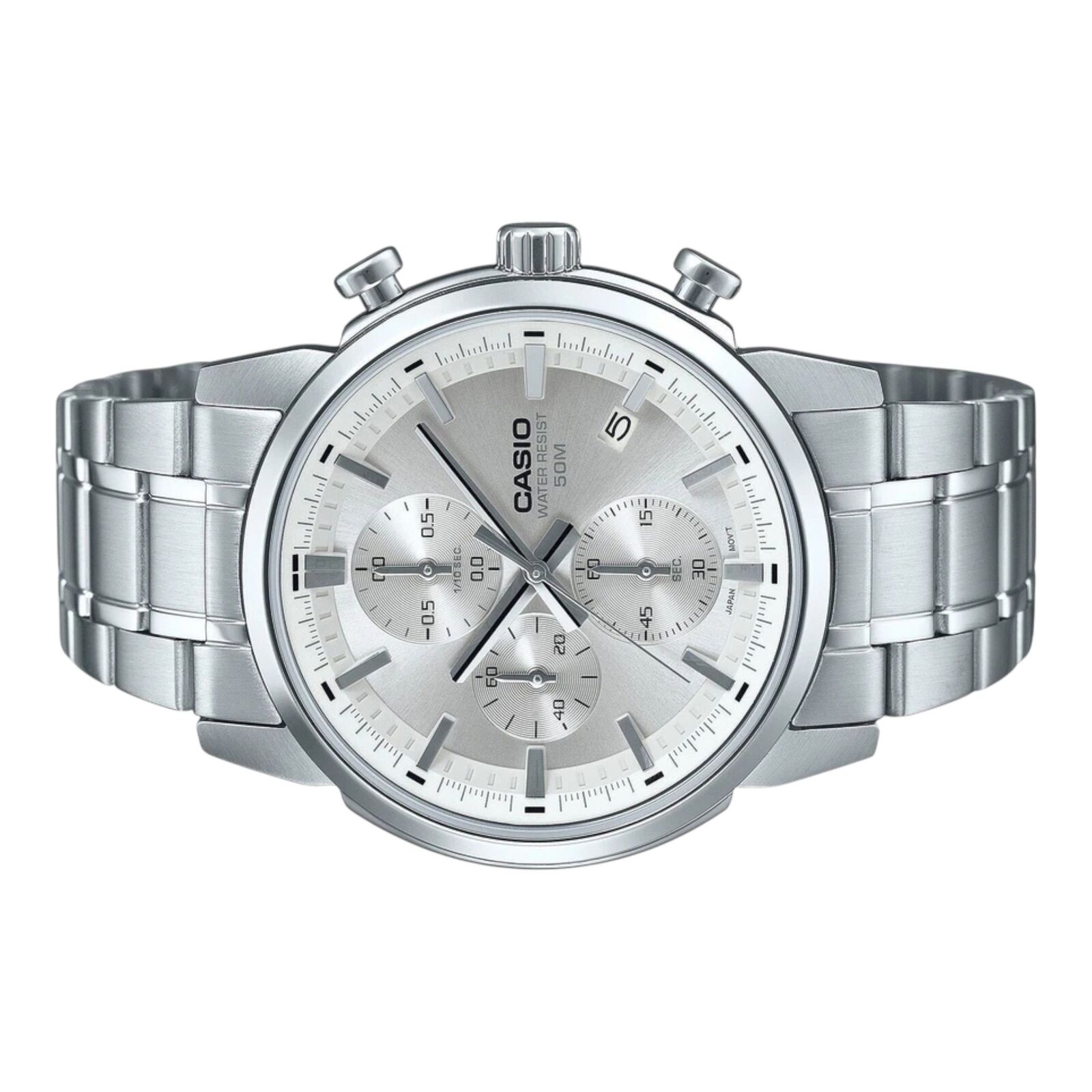 Casio MTP-E510D-7AV Mens Chronograph Silver Dial Stainless Steel Watch 50M