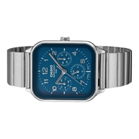 The Casio MTP-M306D-2AV combines classic looks with practical features. Its striking blue dial includes three subdials that display the day, date, and 24-hour time, making it a versatile choice for any man. The stainless steel band and 50-meter water resistance ensure durability and confidence in any setting.