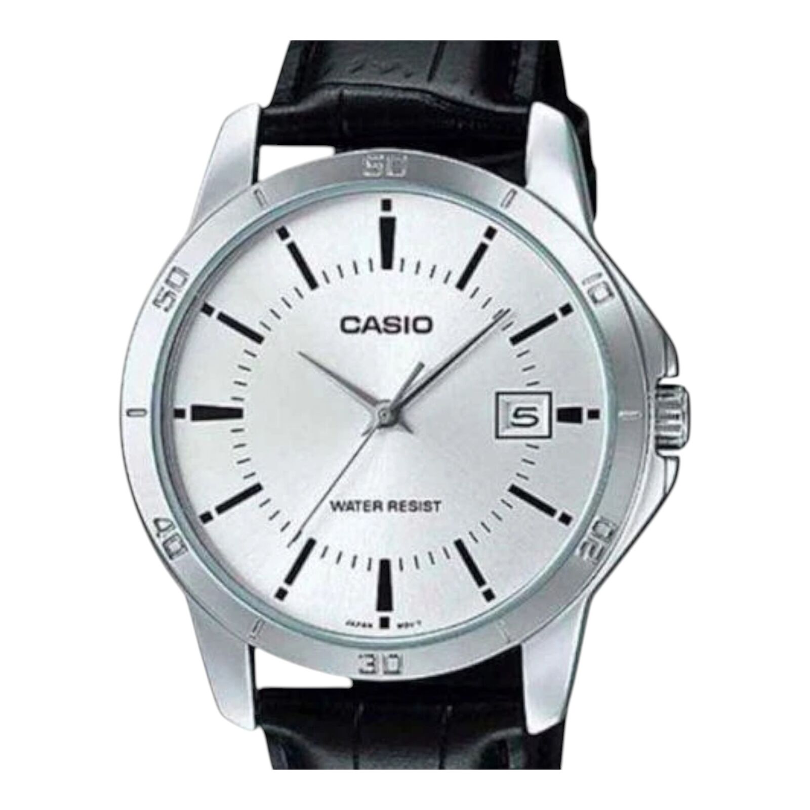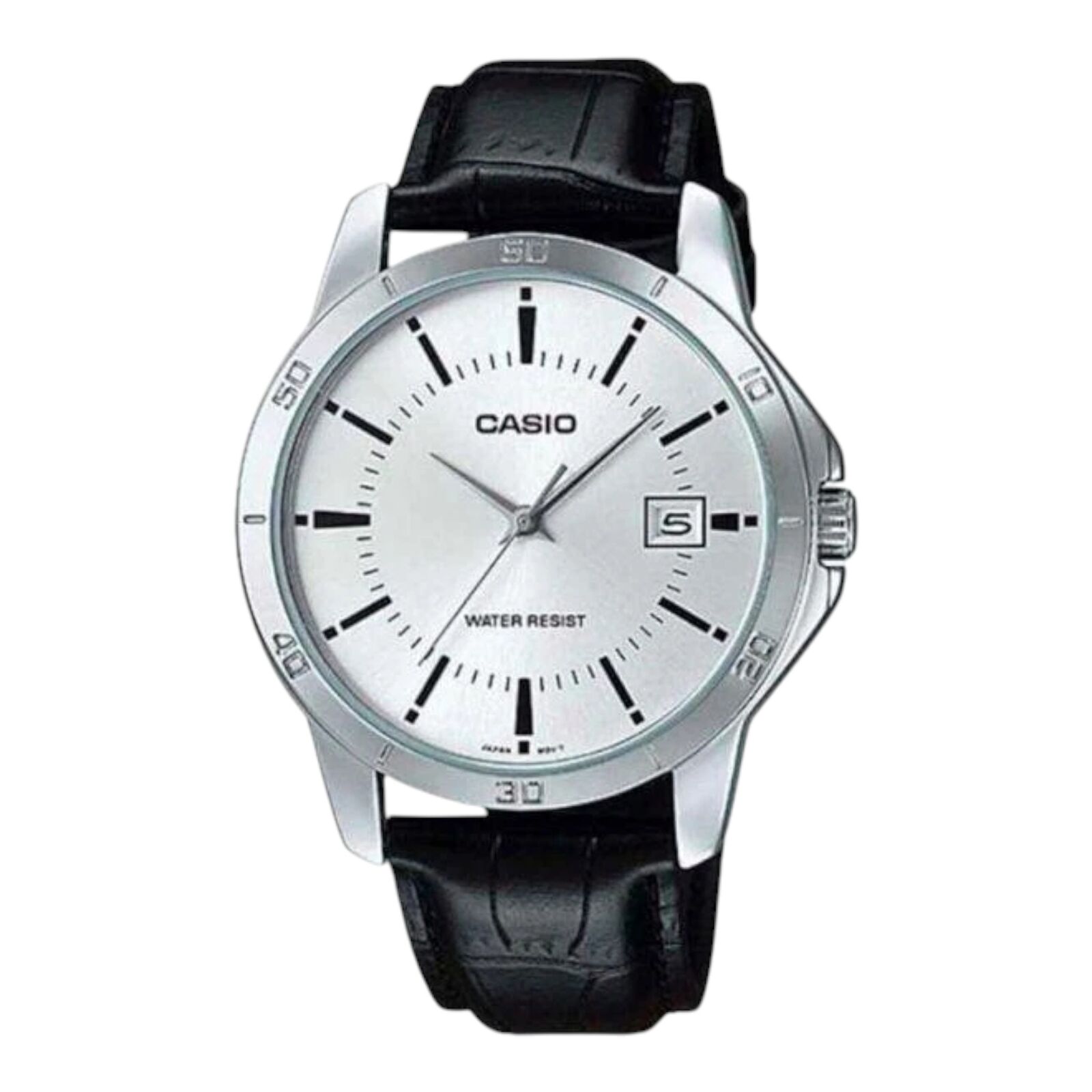 The Casio MTP-V004L-7AUDF is a clean and practical timepiece with timeless appeal. Featuring a crisp white dial, genuine leather strap, and easy-to-read date display, it’s built for comfort and simplicity in your everyday routine.
