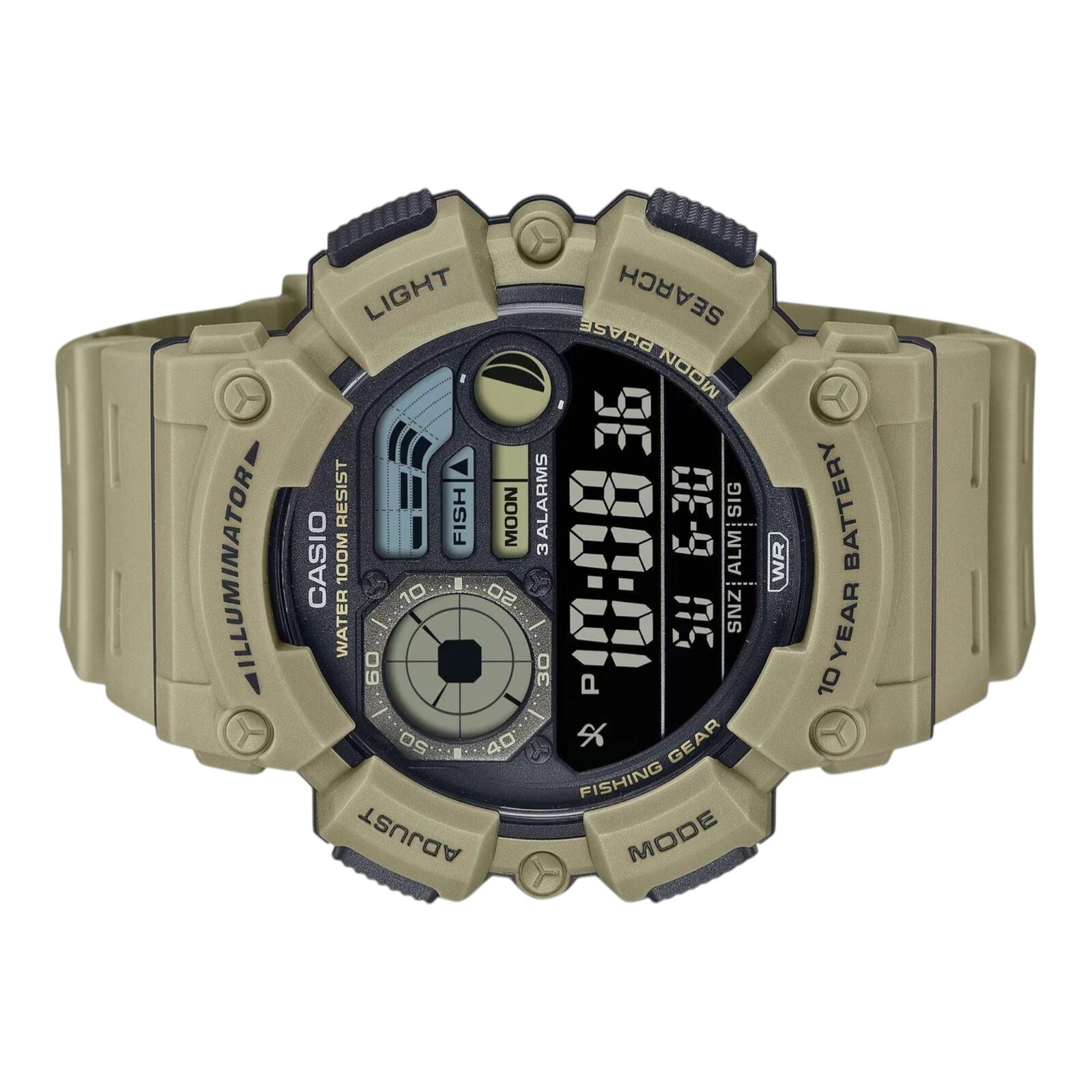 Casio WS1500H-5 Mens Watch Digital Brown Resin 100M Fishing Moon Phase