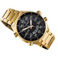 Citizen JM5472-52E Mens Watch Eco-Drive Chronograph Black Dial Gold Band