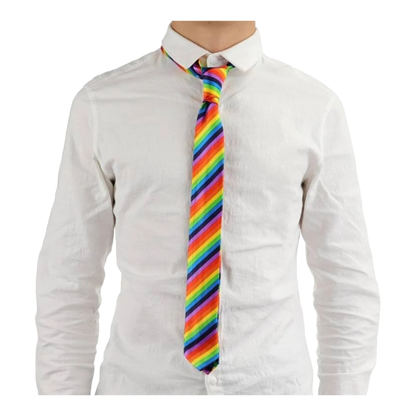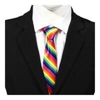 Show your support and pride with our vibrant Rainbow Striped Skinny Tie. Perfect for pride events, parties, or adding a splash of color to any outfit, this multicolour tie is a stylish and meaningful accessory for anyone in the LGBTQ+ community and allies.
