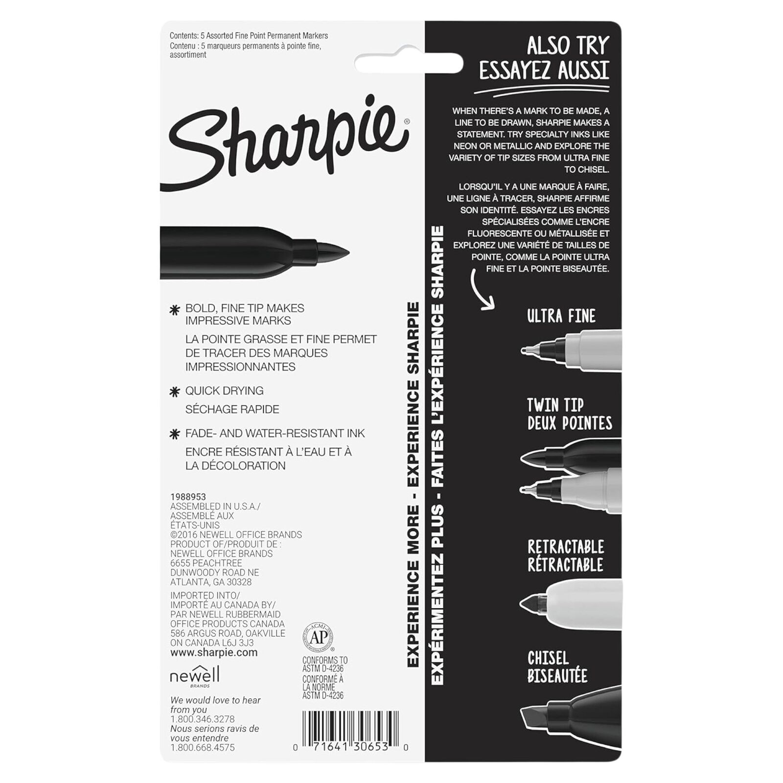 Supplied as one retail pack containing 5 Sharpie Fine Point permanent markers.