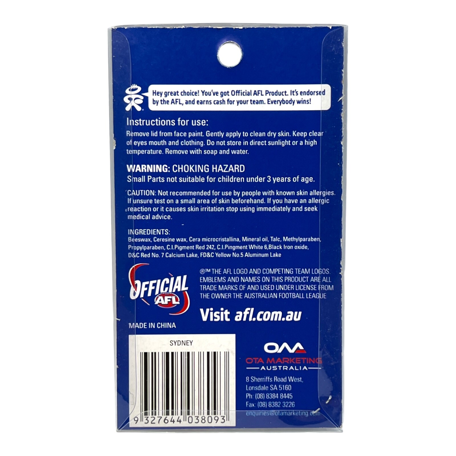 Show your support for the Sydney Swans with this Official AFL Face Paint. Perfect for game days and supporter events, this face paint helps you display your team pride with bold, vibrant color.