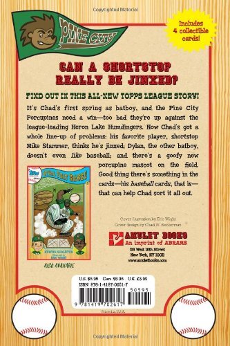 These fun, illustrated chapter books for 7 to 9 year old readers feature the adventures and misadventures of the Pine City Porcupines, a hapless team, including Chad their erstwhile bat boy who's got a huge baseball card collection and sat-happy Dylan, Chad's best friend. While the team, its league and the games are fictional, the baseball cards the bat boy uses to help solve the player's problems are based on real Topps cards. Book One: Just when they seem poised to get hot as a ball team, the Porcupines have a tough series against the league-leading Heron Lake Humdingers and the entire Porcupine staff seem more prone to mistakes on and off the field. This is especially true for Chad, who feels even clumsier and more awkward than usual compared to the Humdingers' League star who's been sent down for an offensive slump and shaky defense. Mike seems to mishandle or boot every ball that bounces his way. Superstitious even for a baseball player, Mike sticks religiously to his routine and can't figure out what he's been doing differently since the jinx began. Chad finds a major league rookie card and figures out the jinx, helping Stammer settle his nerves on the field and seems to settle his own nerves on the sidelines.