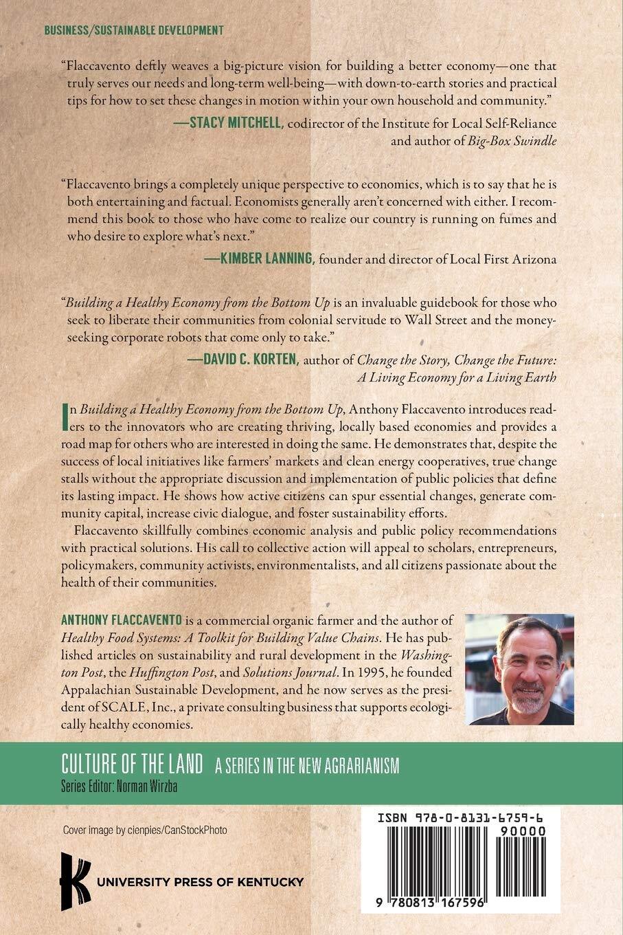In Building a Healthy Economy from the Bottom Up: Harnessing Real World Experience for Transformative Change, Anthony Flaccavento introduces readers to the innovators who are creating thriving, locally based economies and provides a road map for others who are interested in doing the same. He demonstrates that, despite the success of local initiatives like farmers' markets and clean energy cooperatives, true and lasting change of this type stalls without the appropriate discussion and implementation of public policies that define their lasting impact. He shows how active citizens can spur essential changes, generate community capital, increase civic dialogue, and foster sustainability efforts.