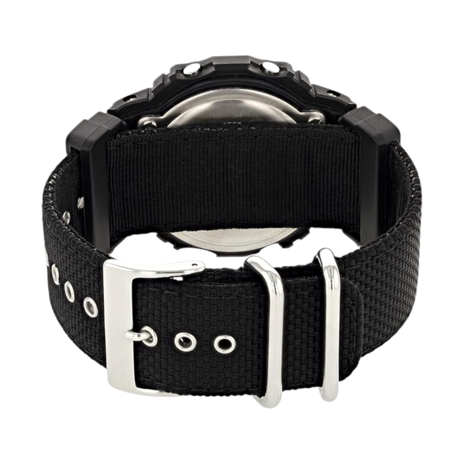 Introducing the rugged Casio G-Shock Quartz Black Resin Watch, a durable and stylish timepiece engineered to withstand the most challenging environments. This watch combines G-Shock's renowned toughness with sleek, monotone aesthetics, complemented by a high-strength CORDURA fabric band for unmatched durability and comfort.