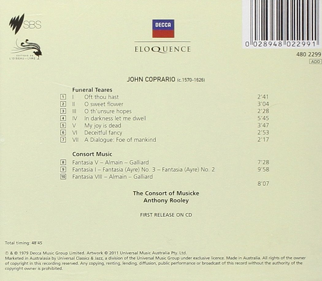 Coprairo / Rooley / Consort Of Musicke – Coprario: Funeral Teares