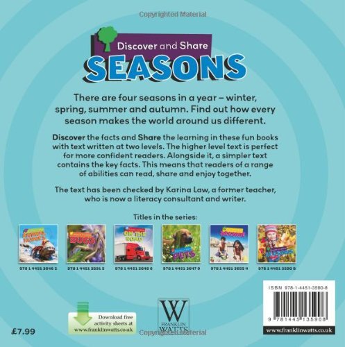 There are four seasons in a year - winter, spring, summer and autumn. Find out how every season makes the world around us different.A series of differentiated text books on topics that children really want to read about. The lower level text is ideal for emerging readers and the higher level text will suit more able readers. The large, square format encourages sharing, and spectacular photos are featured on every page.