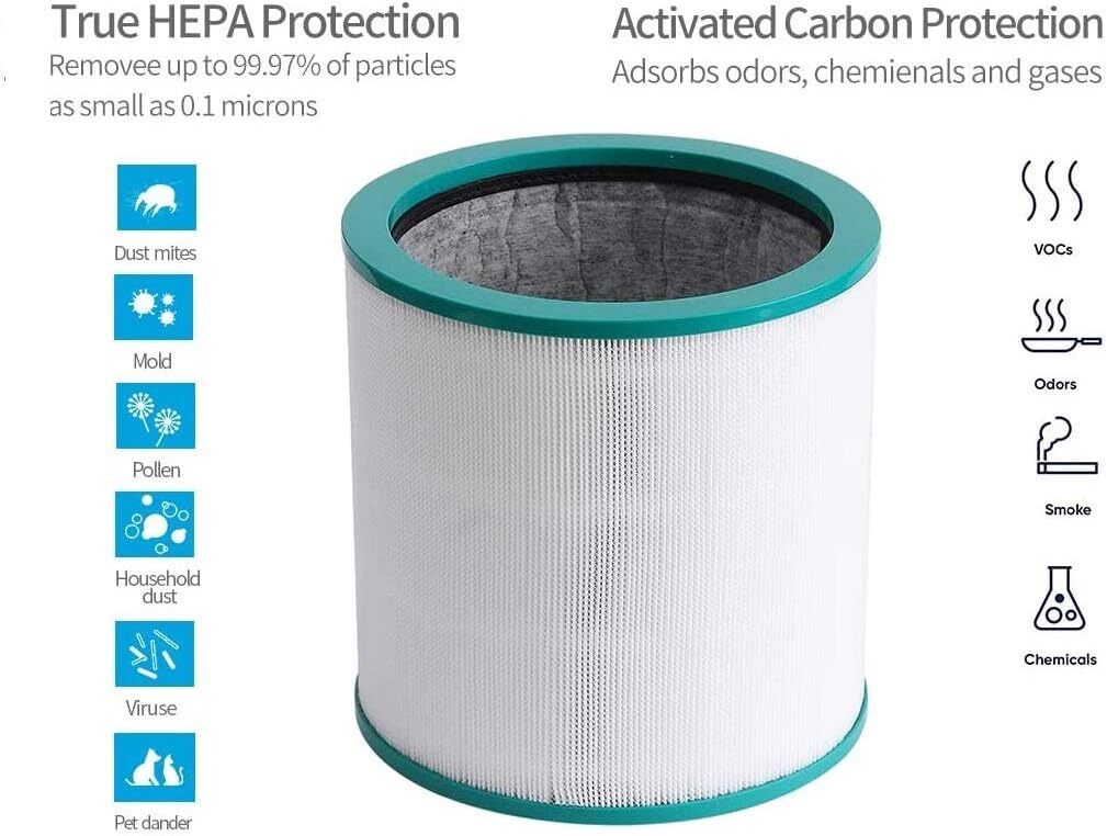 High particle filtration HEPA filter for Dyson Pure Cool air purifier, this exceptional quality filter will remove fine dust, pollen, bacteria and much more, it will also remove allergens, smell and smoke using its activated carbon technology. This superior quality generic filter will provide reliable filtration, unlike some other generic filters.