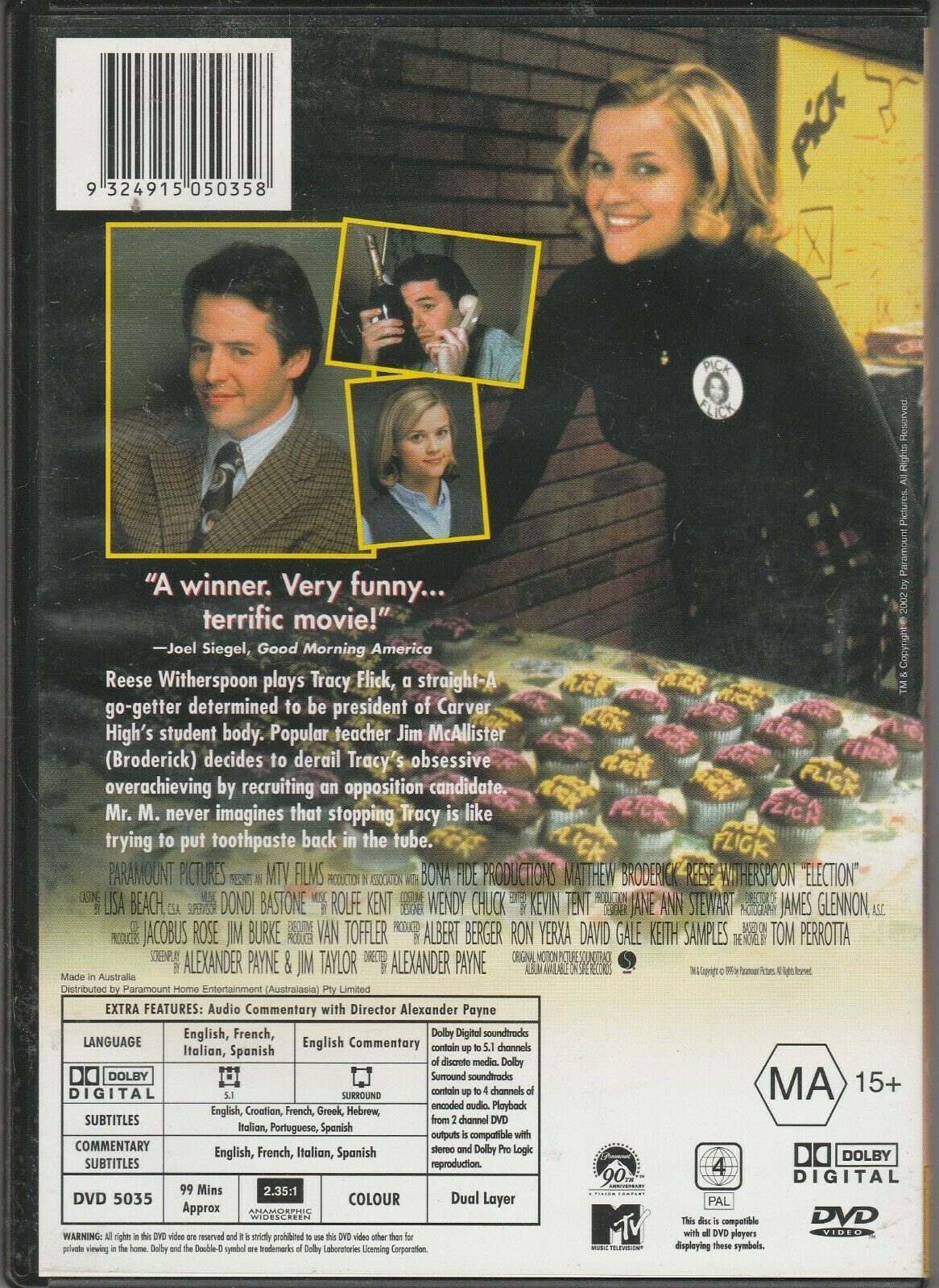 Reese Witherspoon plays Tracy Flick, a straight-A go-getter determined to be president of Carver High's student body. Popular teacher Jim McAllister (Matthew Broderick) decides to derail Tracy's obsessive overachieving by recruiting an opposition candidate. Mr M. never imagines that stopping Tracy is like trying to put toothpaste back in the tube.
