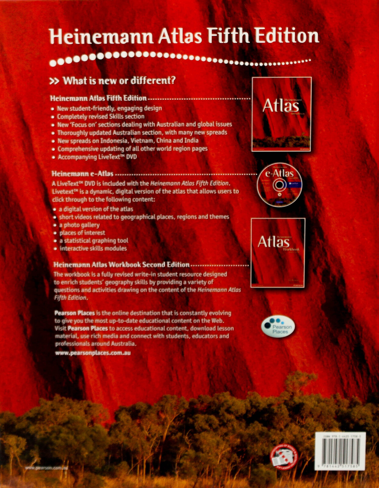 The Heinemann Atlas 5E is your perfect Australian series. There are over 100 pages of Australian content, from comprehensive coverage of local geographical issues to heritage, multicultural, indigenous, mineral, urban growth and land-use information. Offers: revised skills section; 'Focus on' sections dealing with Australian and global issues; updated Australian section with new spreads; new spreads on Indonesia, Vietnam, China, India, South Africa and the Arctic; comprehensive updating of all other regions, pages and statistics.