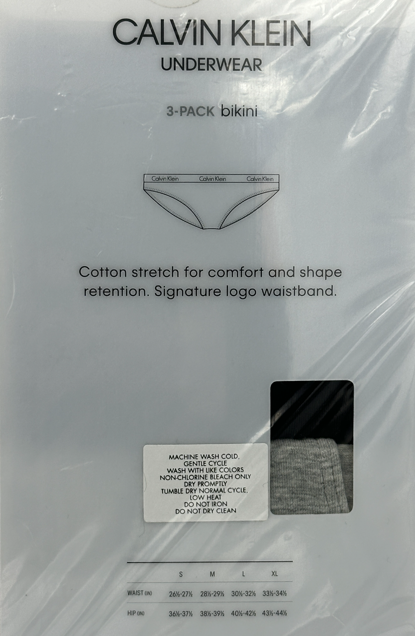 Calvin Klein Womens Underwear 3 Pack - Small Carousel Cotton Bikini Black/Grey