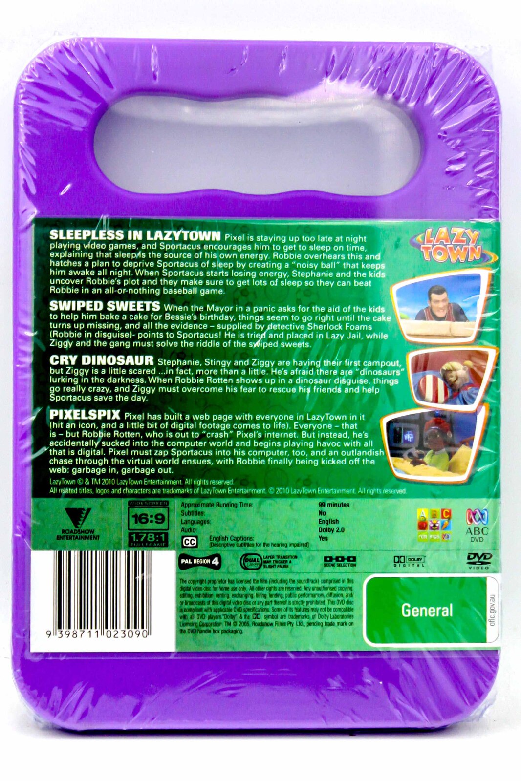Info: Welcome to a new LazyTown adventure! Join Sportacus and the team on this new fun and exciting action packed DVD with the following episodes: Swiped Sweets, Sleepless in LazyTown, Cry, Dinosaur, Pixelspix.