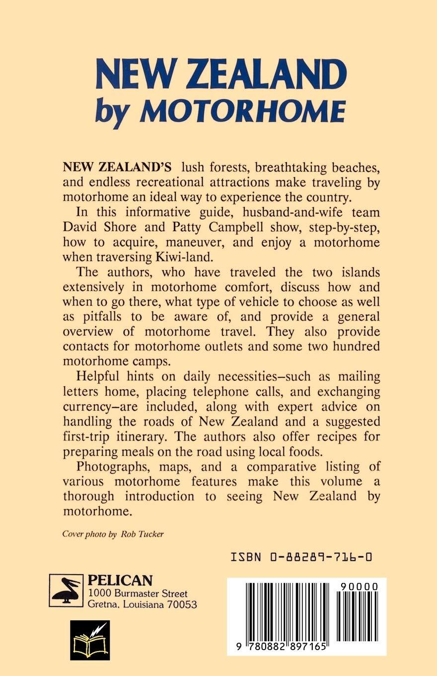 Motorhome travelers are always searching for new and uncrowded places to visit. This book steers the traveler far from the beaten track indeed: to the lush forests, pristine beaches, and majestic volcanoes of New Zealand, the island nation on the other side of the world. New Zealand abounds in recreational opportunities and scenic beauty, while the excellent roads and friendly inhabitants make travel by motorhome the ideal way to view the country's splendors.New Zealand by Motorhome is bursting with practical advice on renting or buying a motorhome in New Zealand, driving and insurance regulations, campgrounds and facilities, and a helpful glossary of the occasionally mystifying New Zealand dialect. A complete guide to things to see and do helps travellers plan their trips. Recipes for local dishes have been specially adapted for cooking in a motorhome kitchen.ABOUT THE AUTHORSHusband-and-wife team David Shore and Patty Campbell are experienced motorhome voyagers. They have explored the roads of Europe and America as well as New Zealand, and include numerous amusing anecdotes about their travels. When not on the road, they live in Los Angeles.