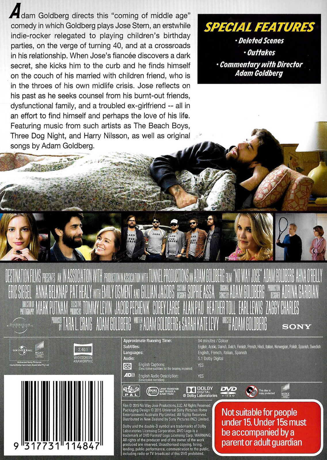 Adam Goldberg directs this \"coming of middle age\" comedy in which Goldberg plays Jose Stern, an erstwhile indie-rocker relegated to playing children's birthday parties, on the verge of turning 40 and at a crossroads in his relationship. When Jose's fiancee discovers a dark secret, she kicks him to the curb and he finds himself on the couch of his married with children friend, who is in the throes of his own midlife crisis. Jose reflects on his past as he seeks counsel from his burnt-out friends, dysfunctional family and a troubled ex-girlfriend--all in an effort to find himself and perhaps the love of his life.