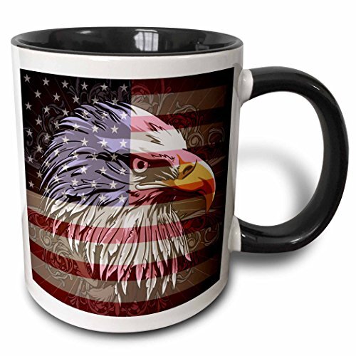 Ornate Patriotic Bald Eagle and USA American Flag Pride - Two Tone Black Mug, 325 ml (11oz) , Black/White- 3dRose