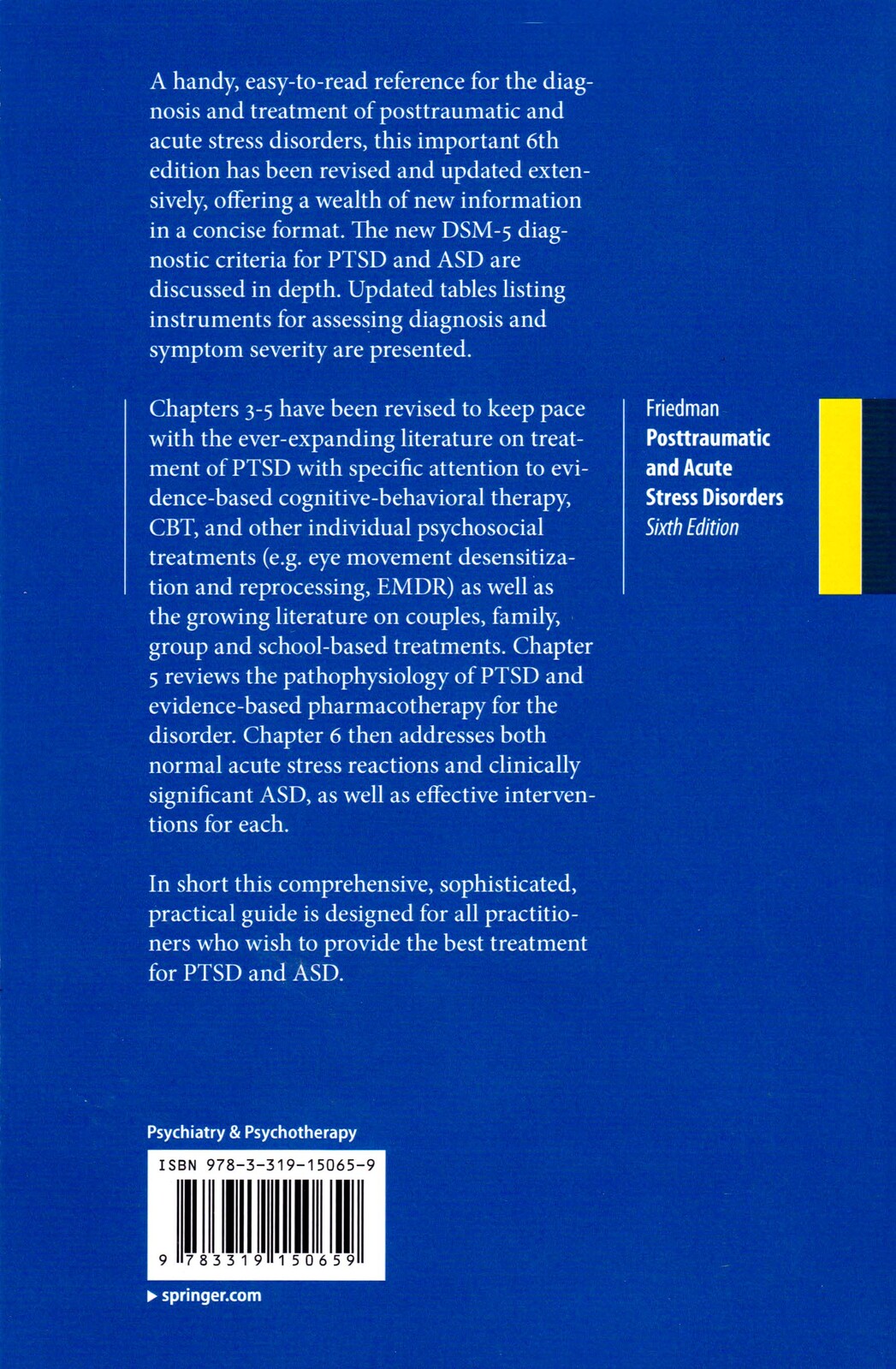Matthew J. Friedman National Center for PTSD, U.S. Department of Veterans Affairs (White River Junction, VT) Departments of Psychiatry and Pharmacology & Toxicology, Geisel School of Medicine at Dartmouth (Hanover, NH).| SKU | BK-9783319150659 |