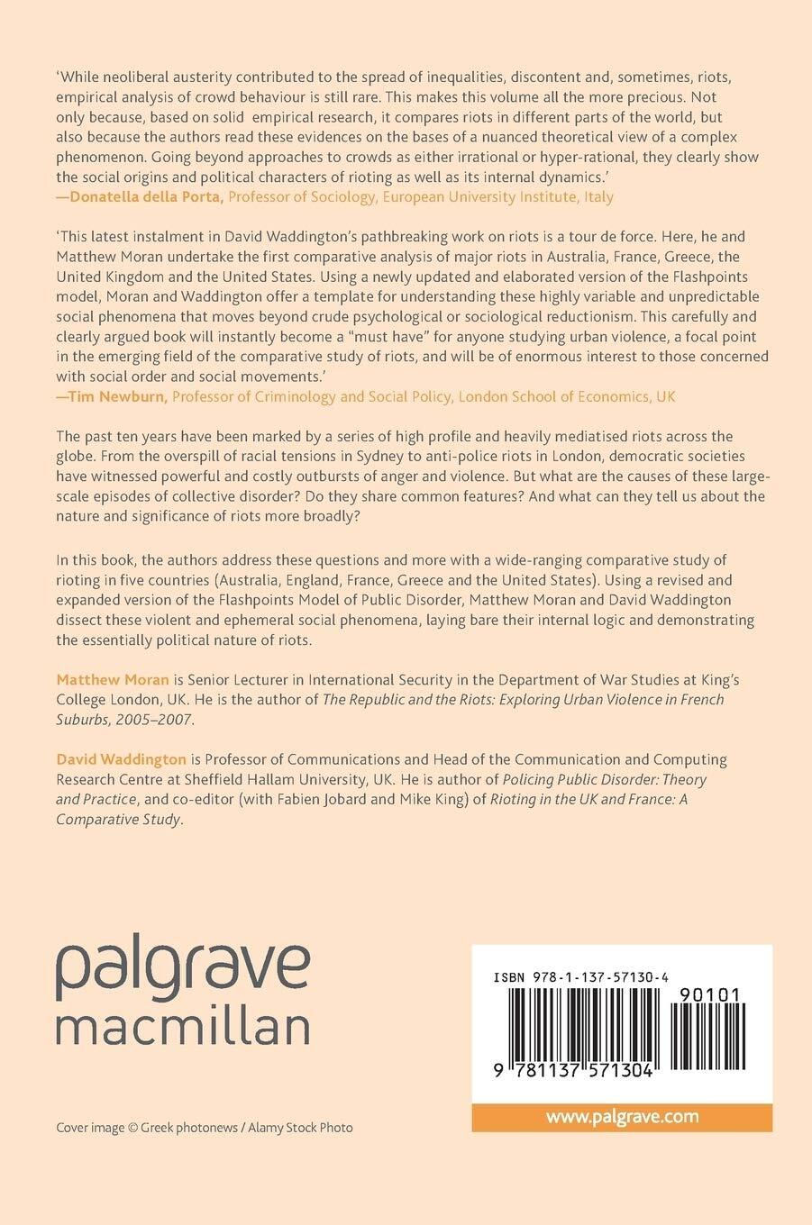 Matthew Moran is Senior Lecturer in International Security in the Department of War Studies at King's College London, UK. He is the author of The Republic and the Riots: Exploring Urban Violence in French Suburbs, 2005-2007. David Waddington is Professor of Communications and Head of the Communication and Computing Research Centre at Sheffield Hallam University, UK. He is author of Policing Public Disorder: Theory and Practice, and co-editor (with Fabien Jobard and Mike King) of Rioting in the UK and France: A Comparative Study.| SKU | BK-9781137571304 |