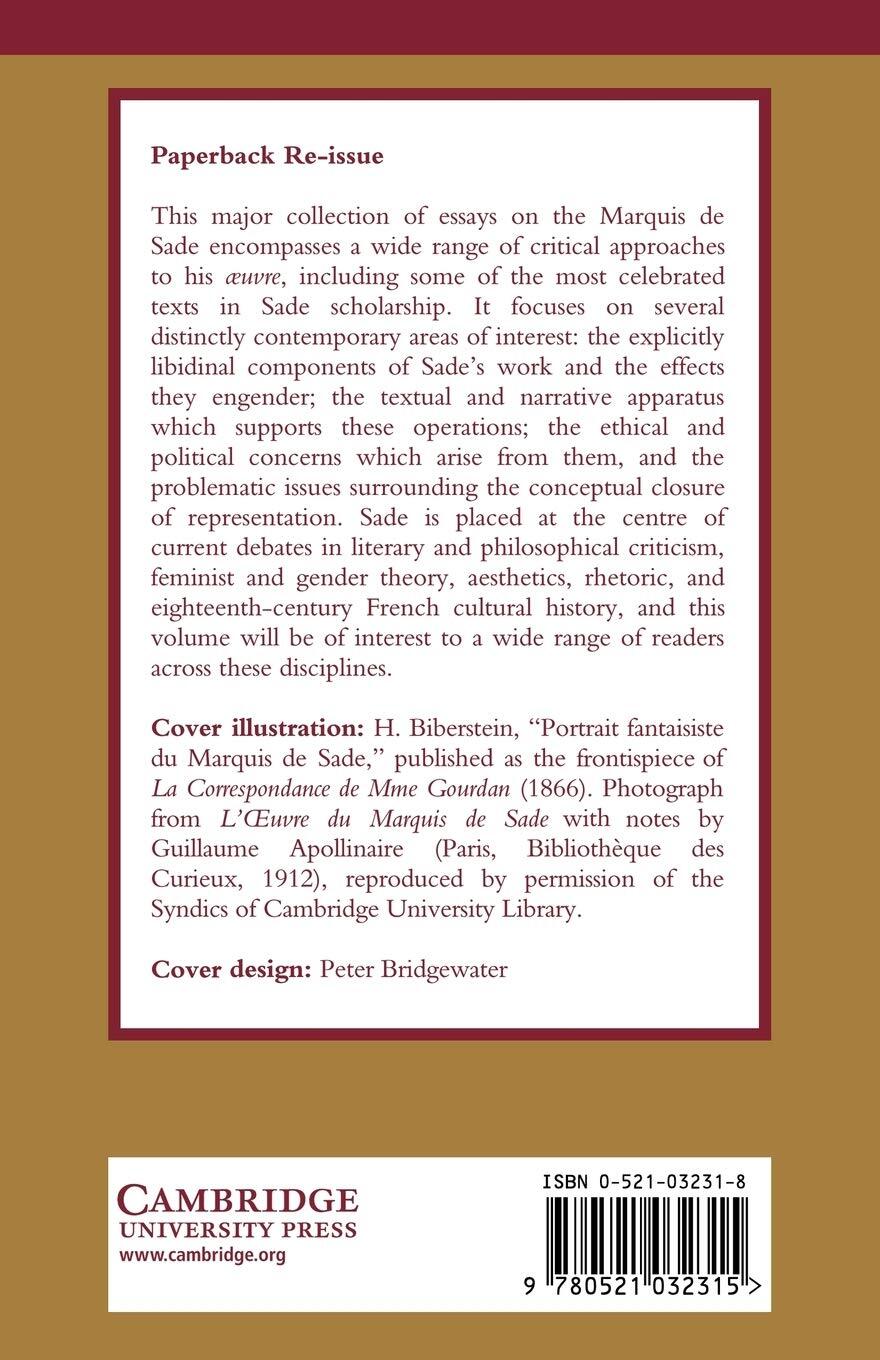 Author: David B. Allison,Mark S. Roberts,Allen S. WeissPublisher: Cambridge University PressCategory: Literary Essays, Literary Studies: General, Literary Studies: C 1500 To C 1800, Literary Studies: Fiction, Novelists & Prose WritersBook Format: PaperbackThis major collection of essays on the Marquis de Sade, first published in 1995, encompasses a wide range of critical approaches to his ÷uvre, including some of the most celebrated texts in Sade scholarship. It focuses on several distinctly contemporary areas of interest: the explicitly libidinal components of Sade's work and the effects they engender, the textual and narrative apparatus which supports these operations, the ethical and political concerns which arise from them, and the problematic issues surrounding the conceptual closure of representation. Sade is placed at the centre of current debates in literary and philosophical criticism, feminist and gender theory, aesthetics, rhetoric and eighteenth-century French cultural history, and this volume will be of interest to a wide range of readers across these disciplines.