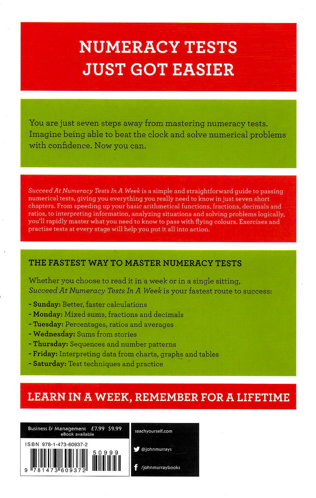 Whether you choose to read it in a week or in a single sitting, Succeed At Numeracy Tests In A Week is your fastest route to success: