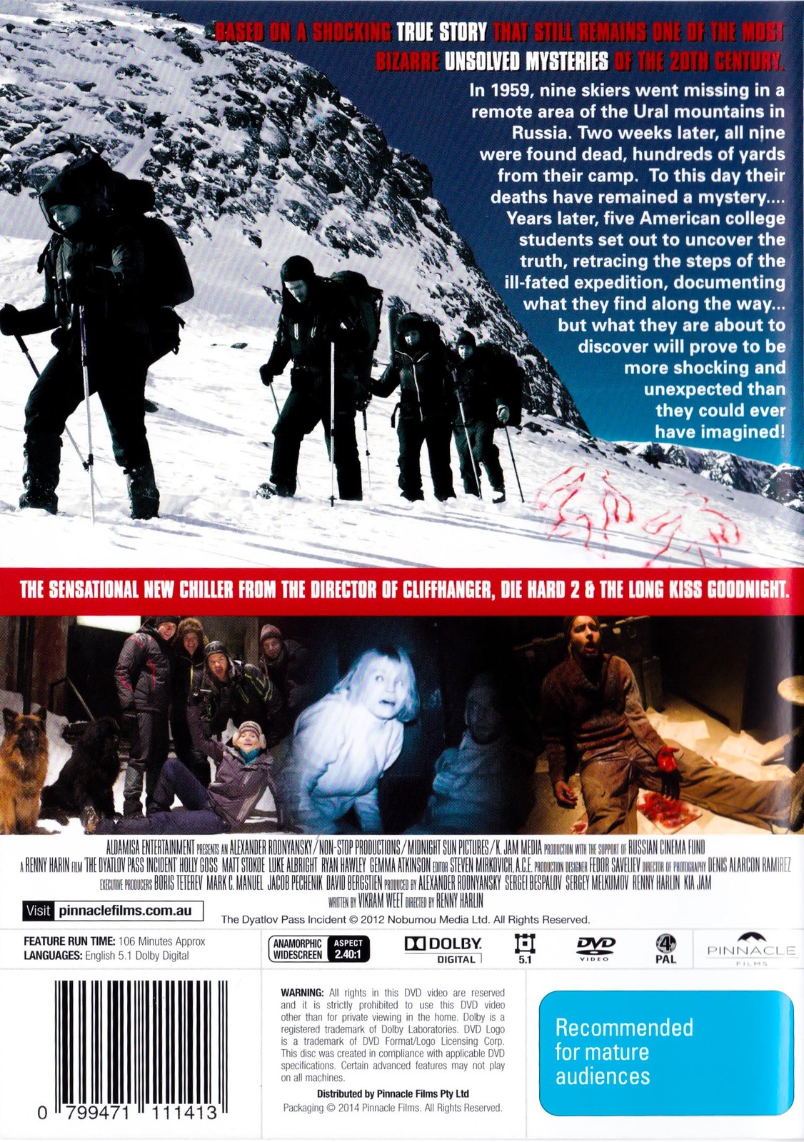 In 1959, nine skiers went missing in a remote area of the Ural Mountains in Russia. Two weeks later, all nine were found dead, hundreds of yards from their camp. To this day their deaths have remained a mystery....Years later, five American college students set out to uncover the truth, retracing the steps of the ill-fated expedition, documenting what they find along the way...but what they are about to discover will prove to be more shocking and unexpected than they could ever have imagined!